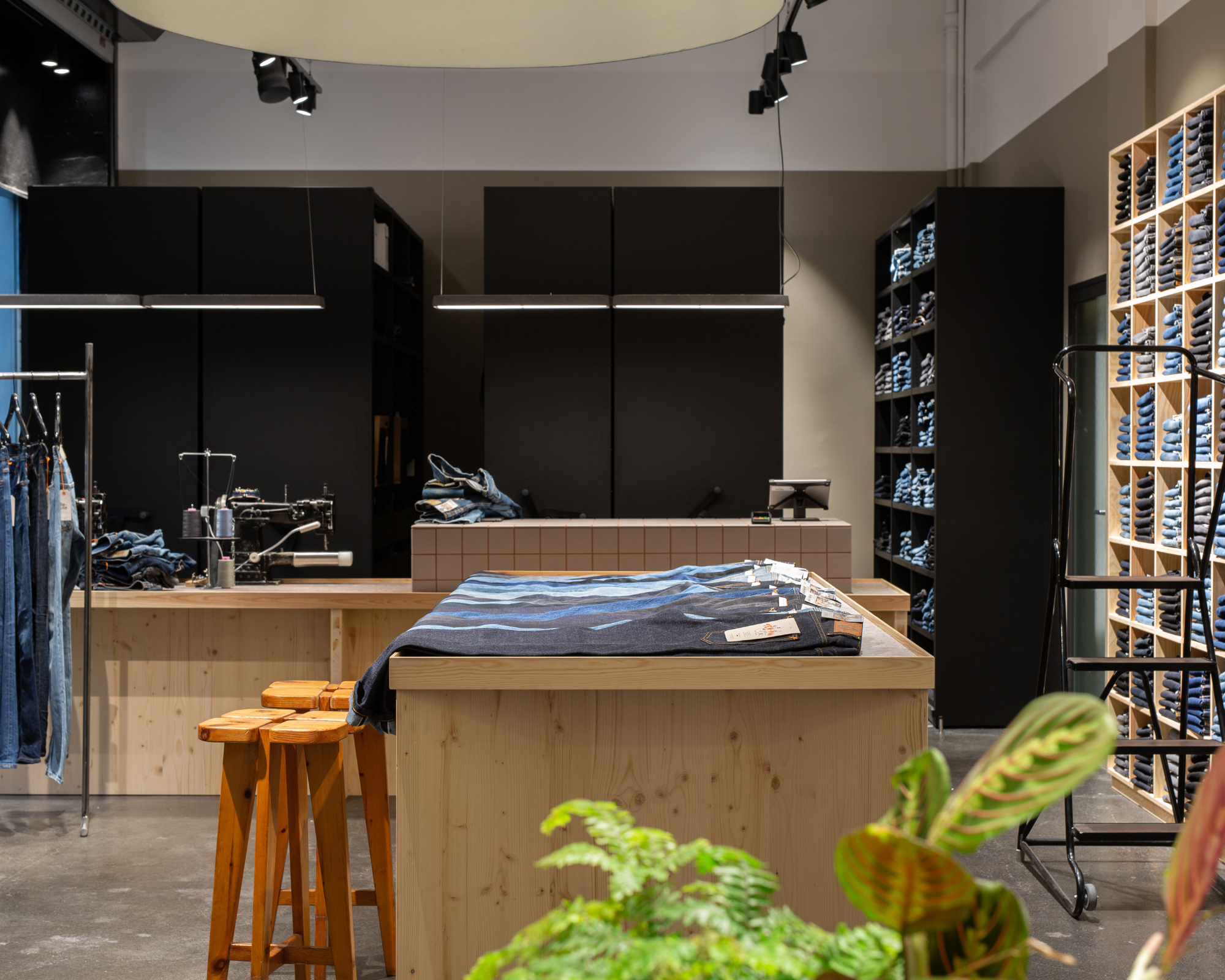 Neighbouring the fluorescent sensory overload of your average high street stores, Nudie Jeans Repair Shops don’t only sell jeans—they tell the story of denim’s evolution. Stacked against unpolished concrete walls on rustic shelves are neat piles of new jeans and covetably worn-in pre-loved pieces. Approachable staff are at the ready to find you the perfect fit. It’s also a hub for circularity: here, loyal customers return to their Nudie jeans (for free, for life). It’s a retail experience that stands out, and that’s no mean feat in an increasingly competitive market.